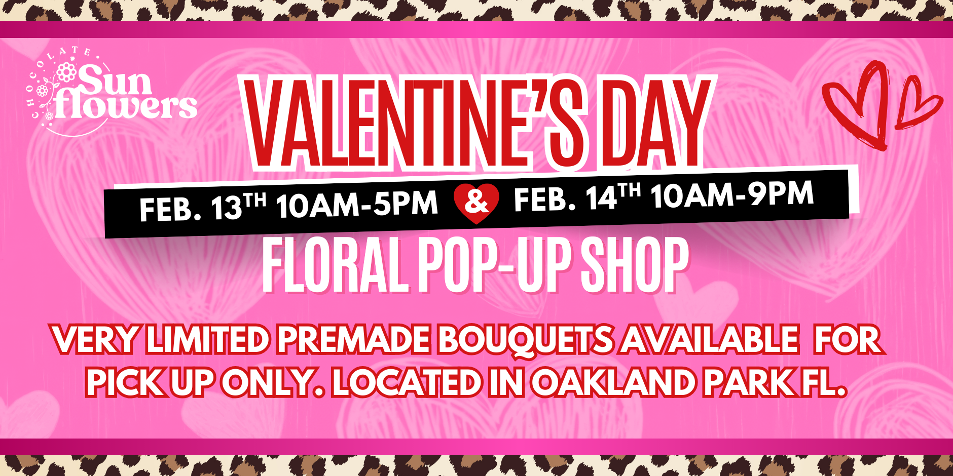 For the New Year 2026, Chocolate Sunflowers is hosting our very own Valentine’s Day Floral Pop-Up Shop at 3932 NE 5th Ave, Oakland Park, FL, 33334 and it’s about to be a whole vibe!