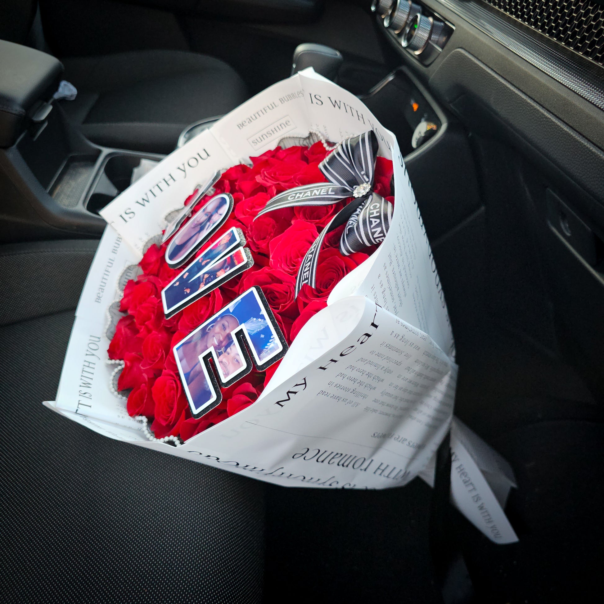 Express your deepest affection with our LOVE ME Bouquet—a stunning arrangement of fresh, long-stem red roses crowned with a personalized photo collage featuring your favorite moments together. Simply upload four cherished photos of you and your partner, and we'll craft a one-of-a-kind keepsake that speaks volumes. The perfect Valentine's Day gift for couples who want to say "I love you" in the most romantic, memorable way possible.